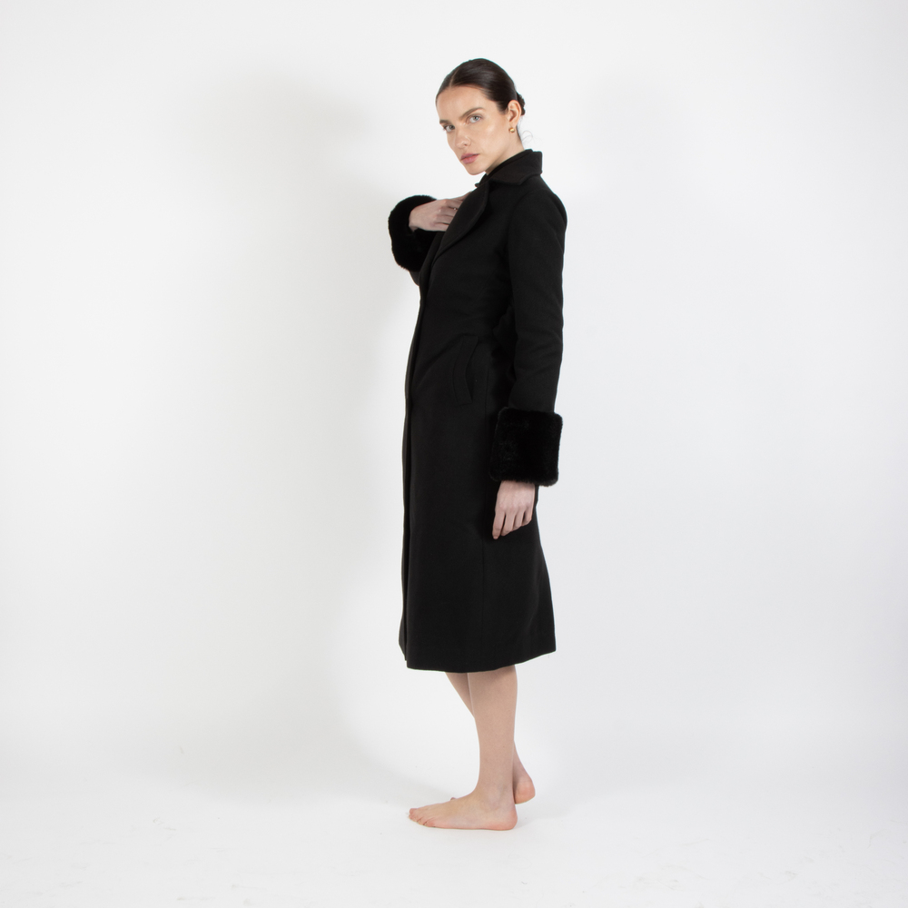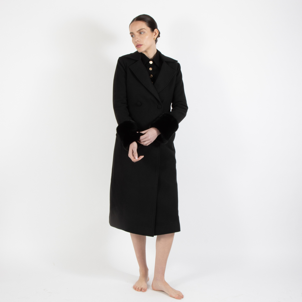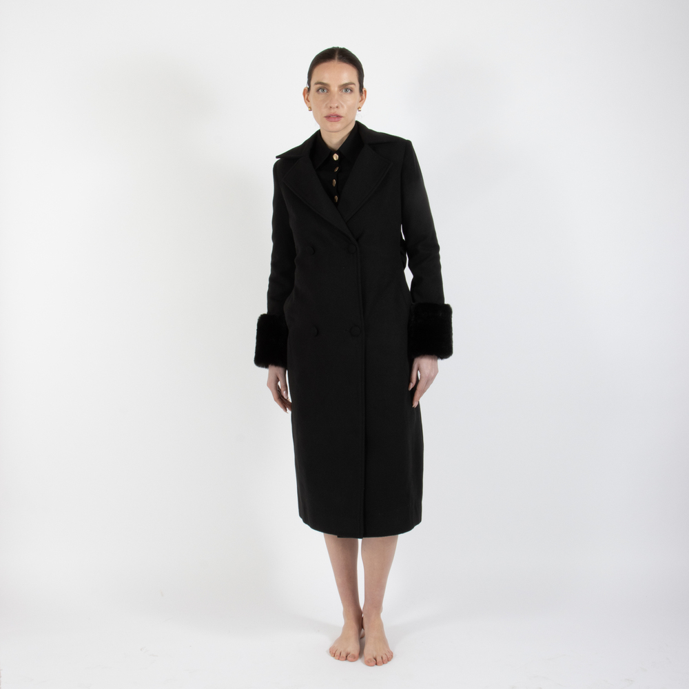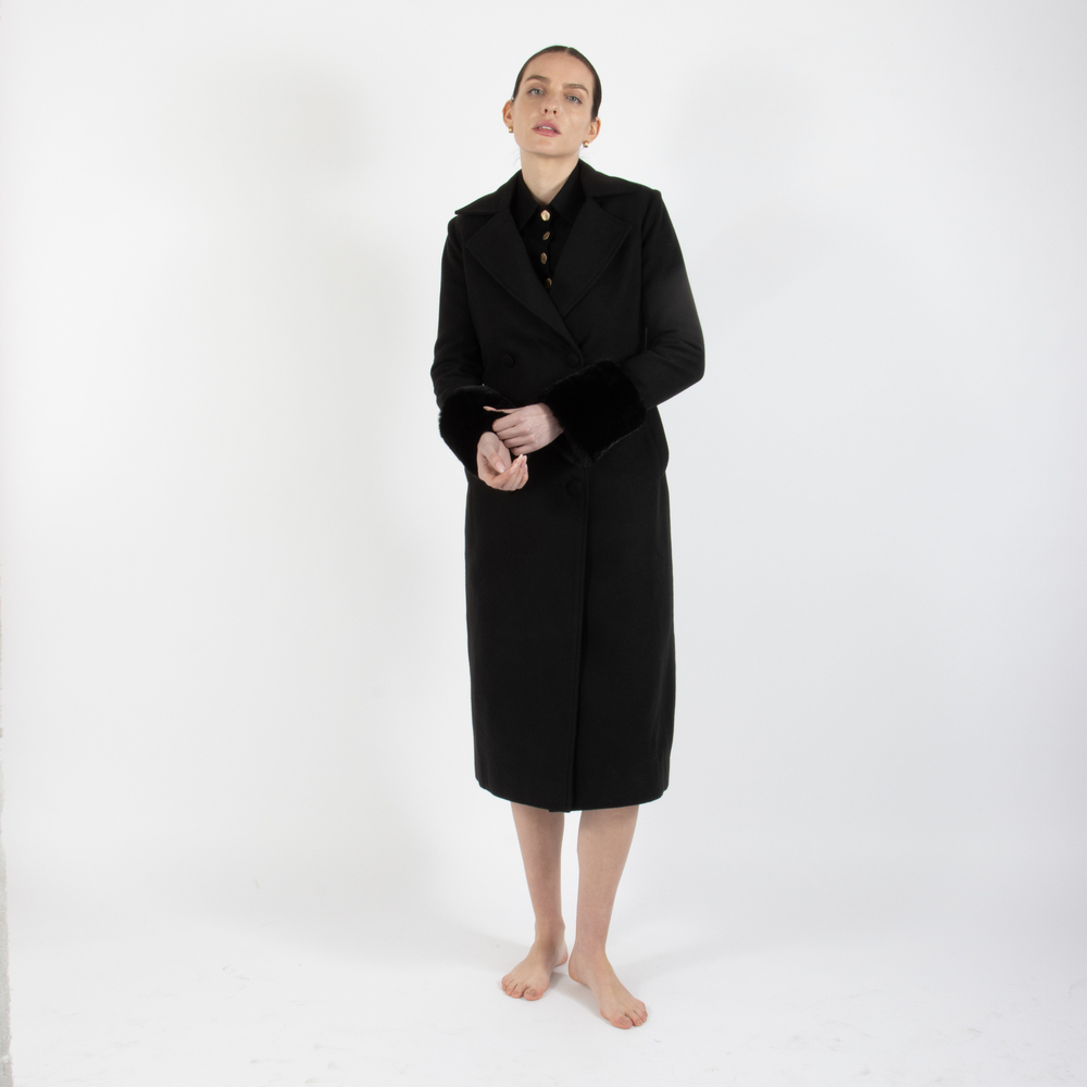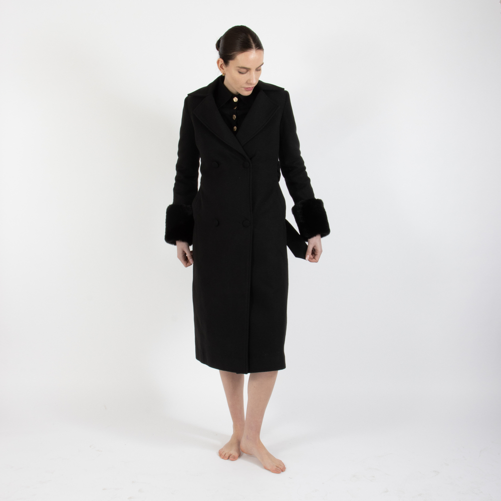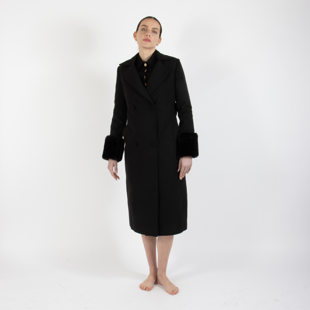 This one-of-a-kind hat features a wide brim and is crafted from iridescent sequined pure white hosiery fabric, specially embroidered with handworked circles of butterflies.
