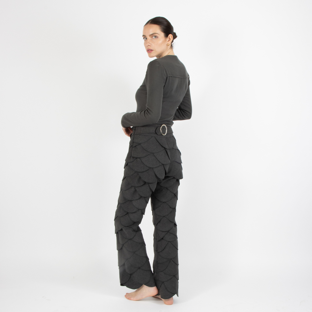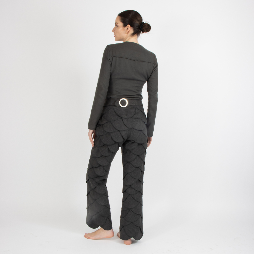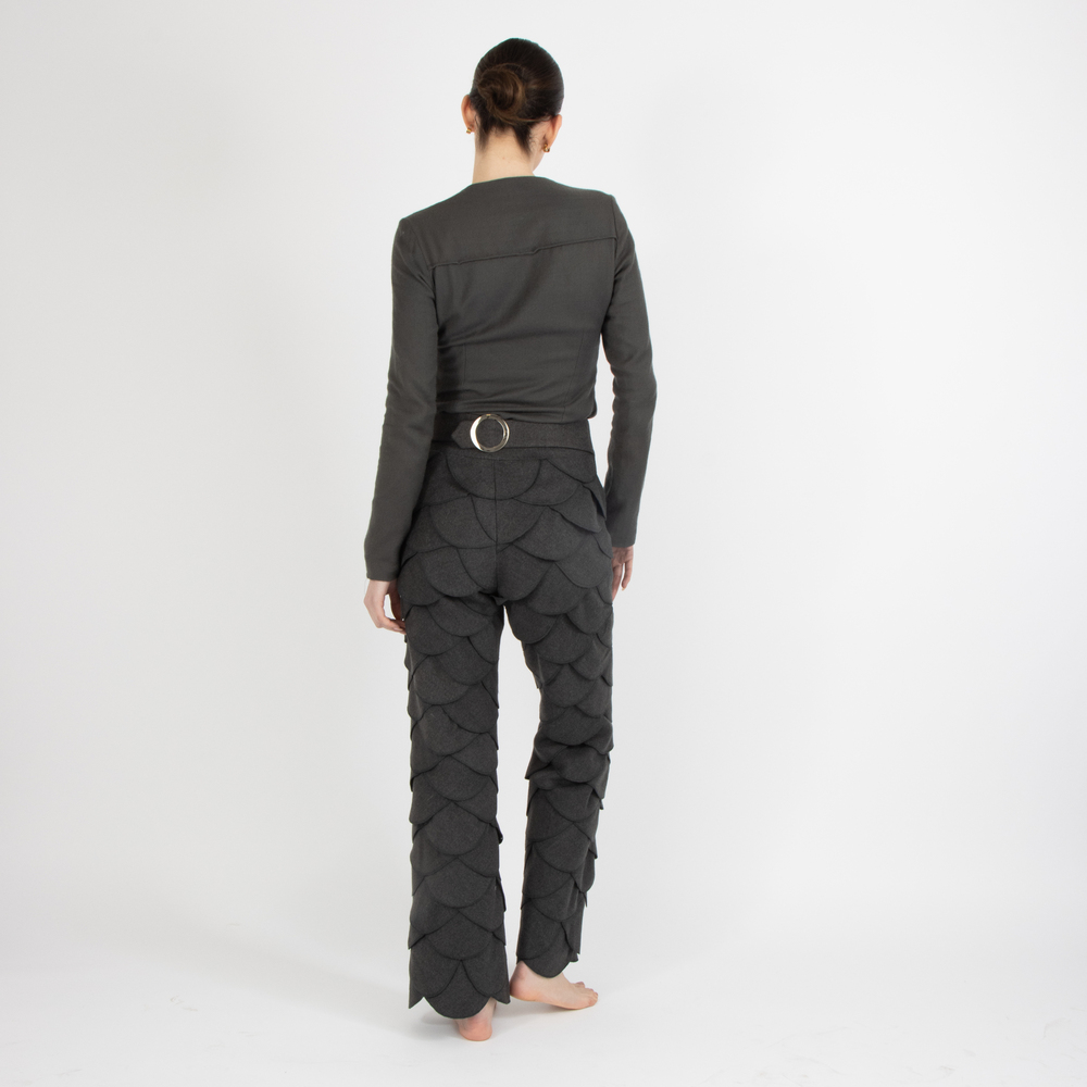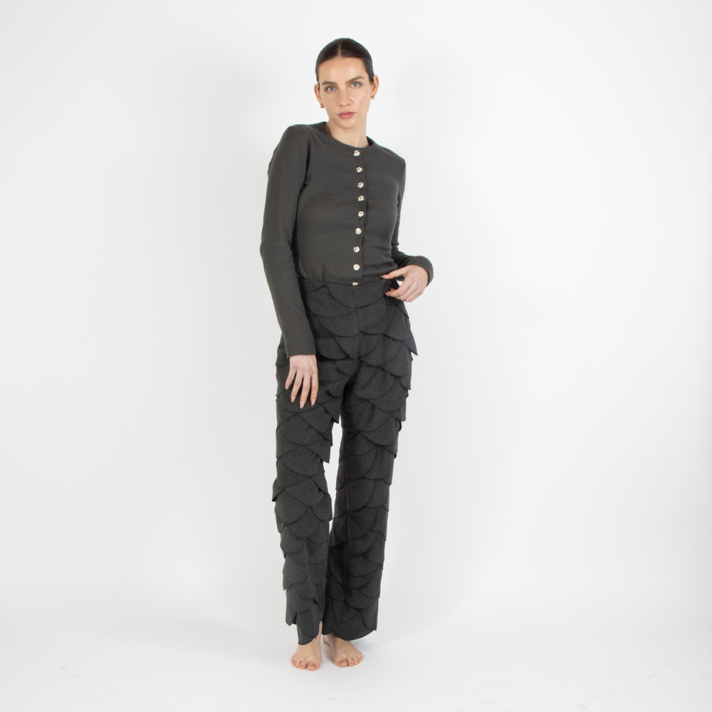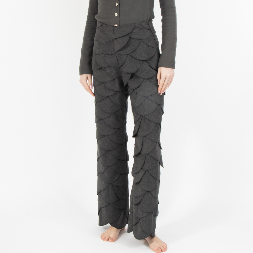 This one-of-a-kind hat features a wide brim and is crafted from iridescent sequined pure white hosiery fabric, specially embroidered with handworked circles of butterflies.