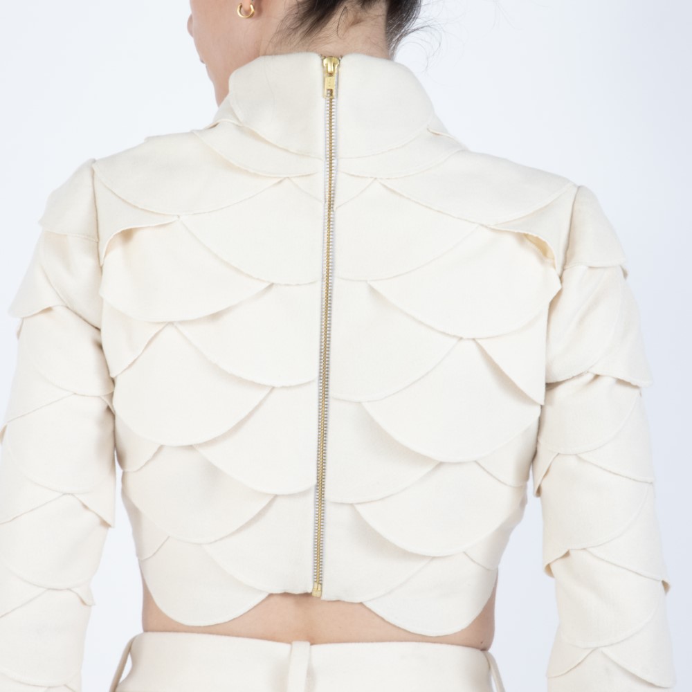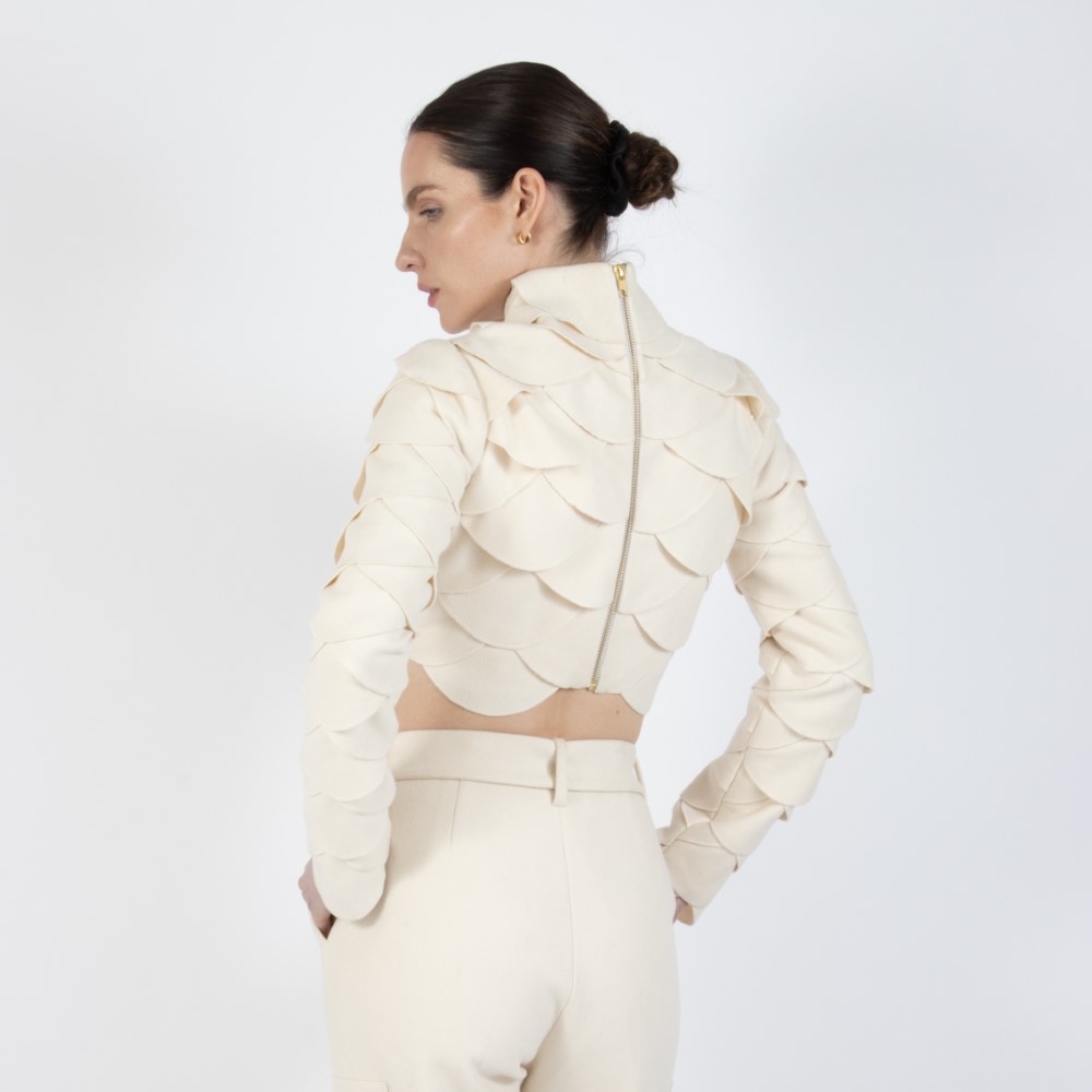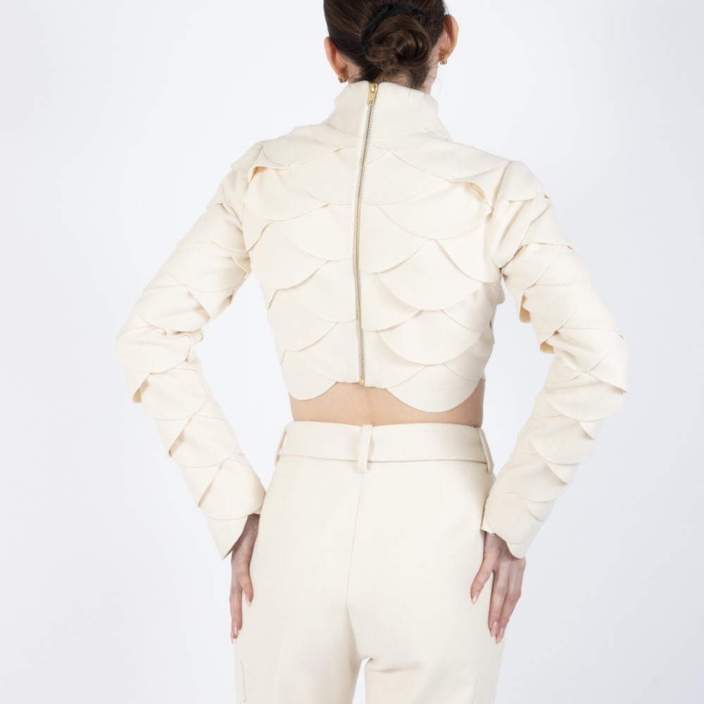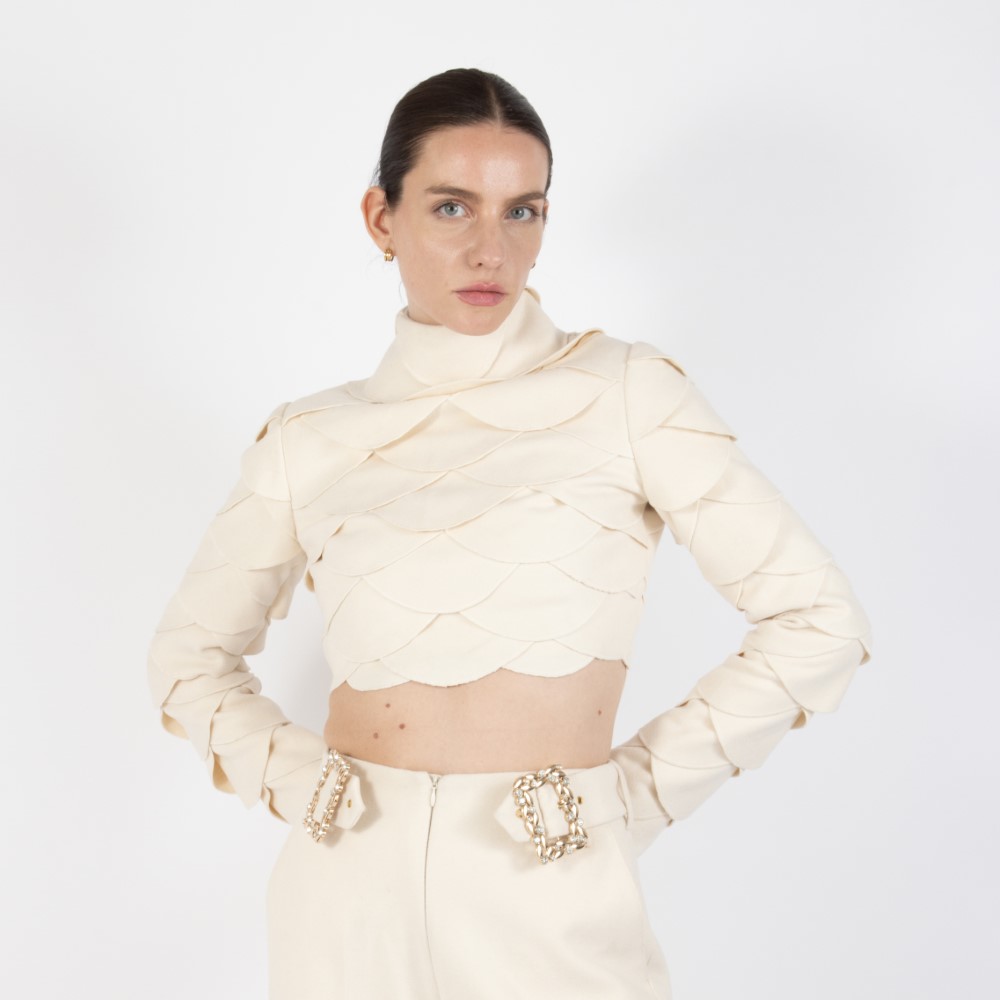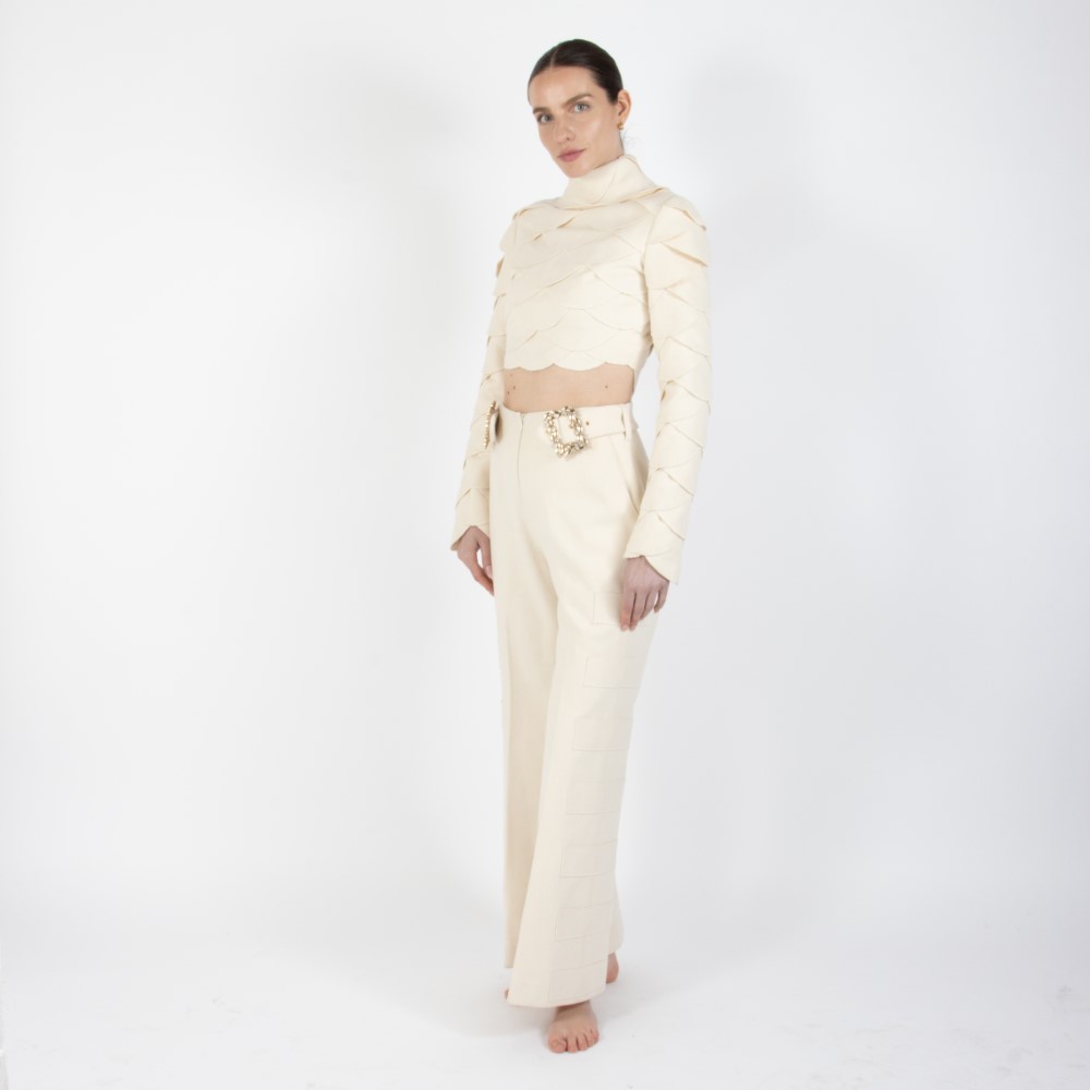 SKU: Ecru White Lunara Scalloped Wool Crop Top Categories: ,