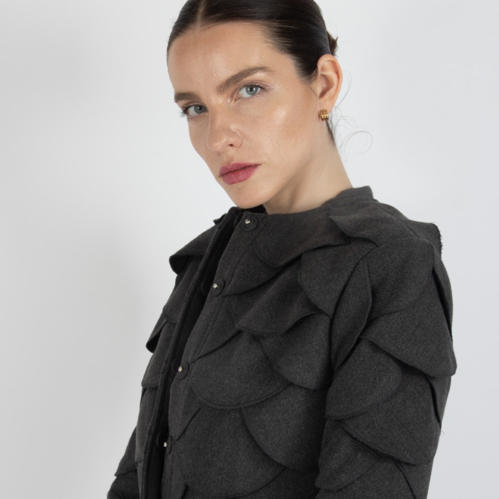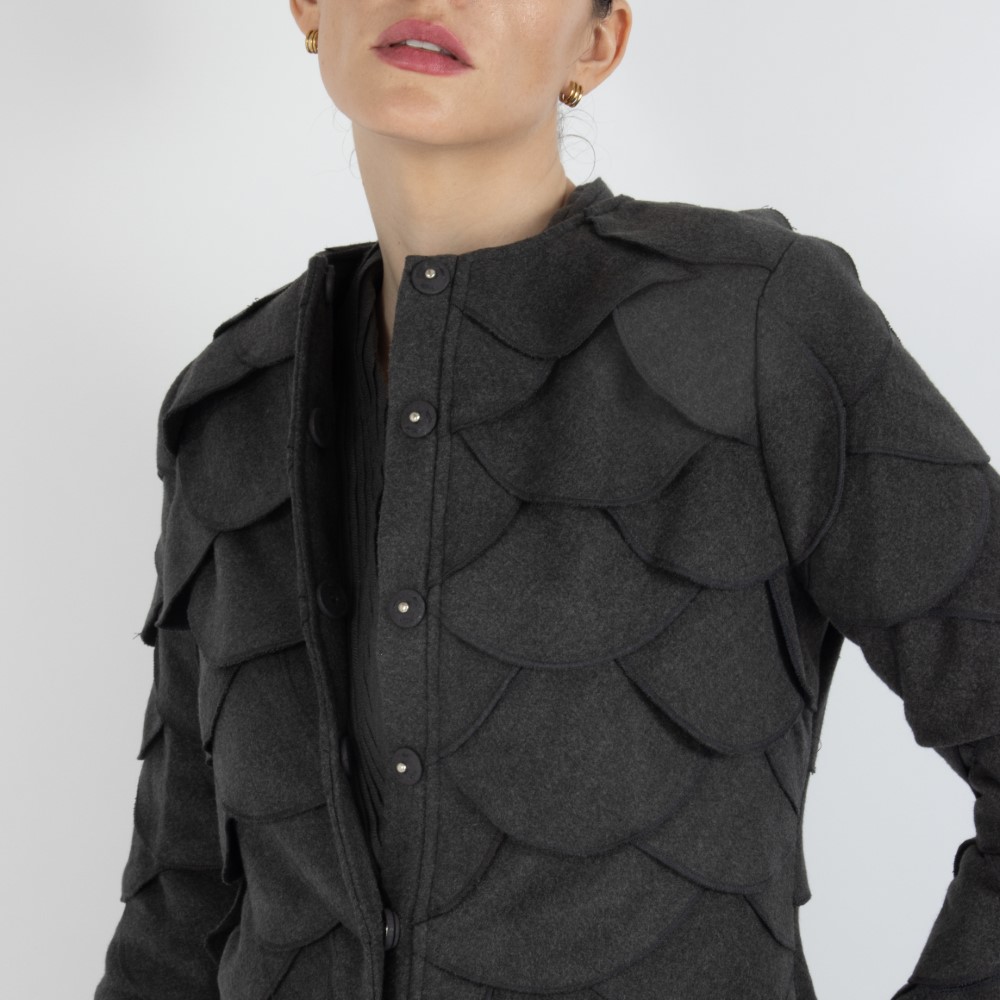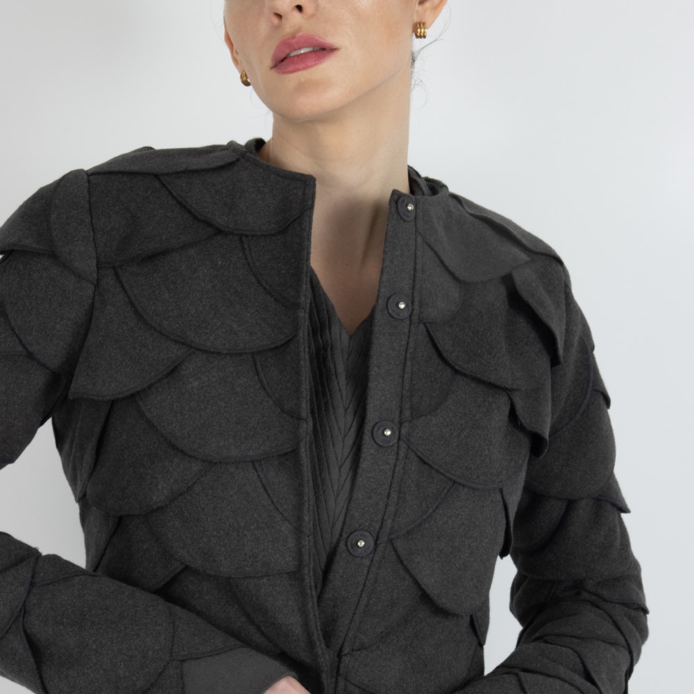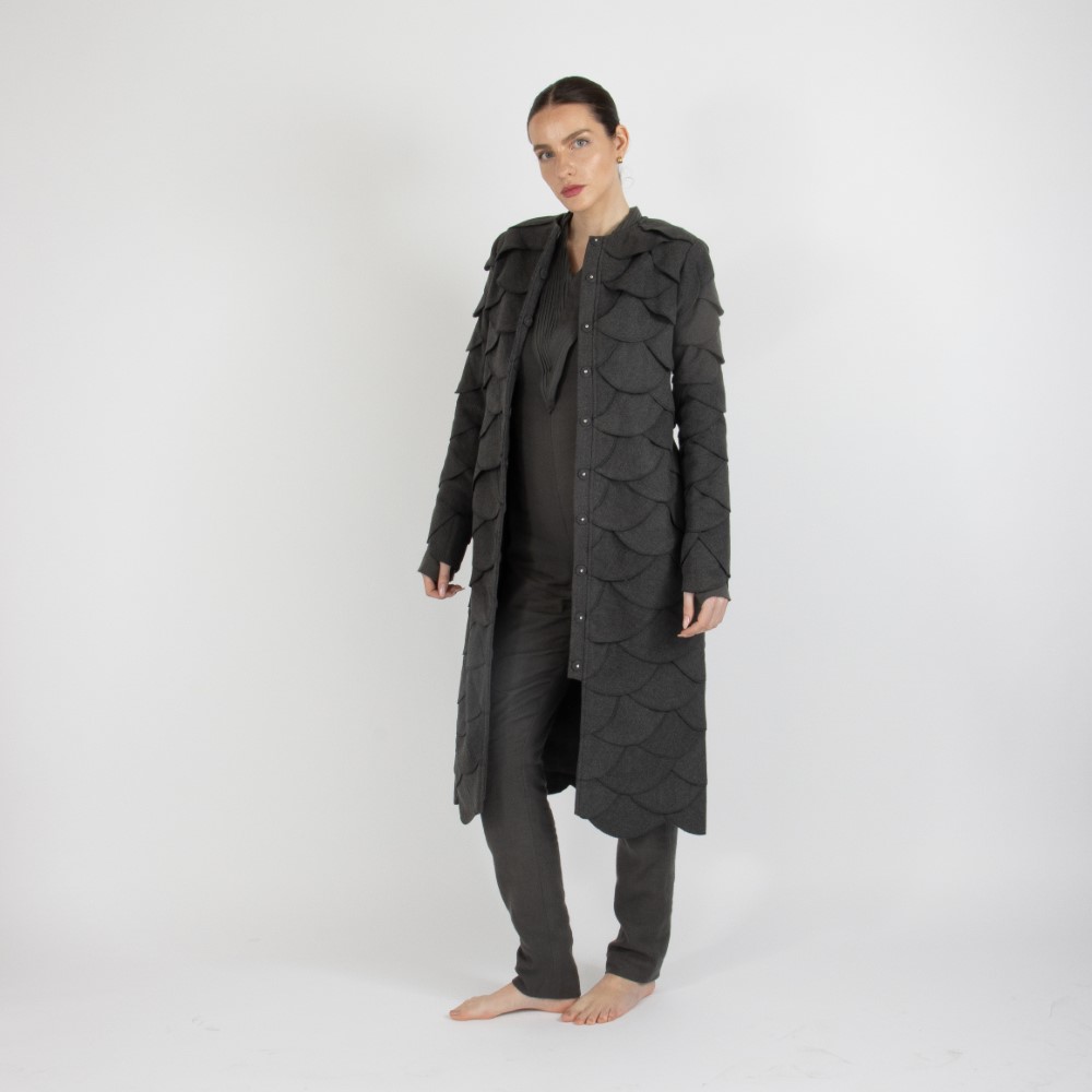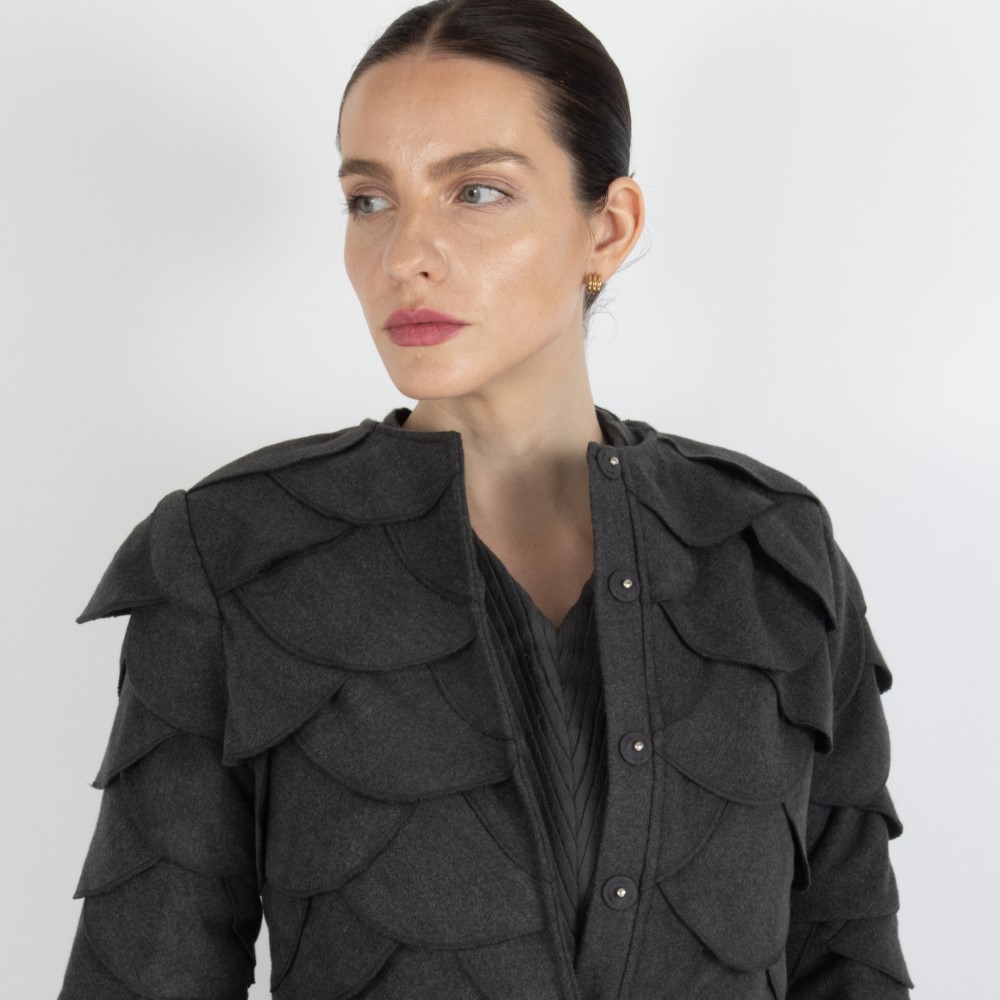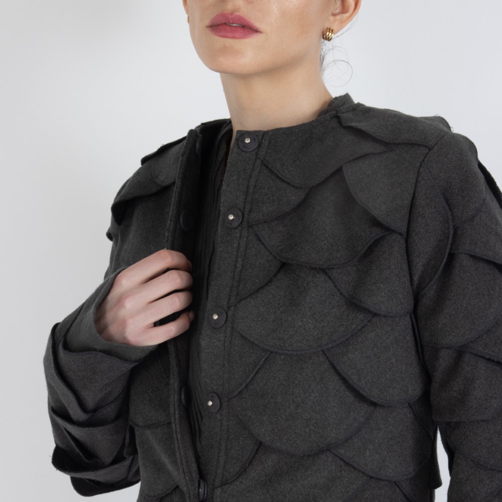 This one-of-a-kind hat features a wide brim and is crafted from iridescent sequined pure white hosiery fabric, specially embroidered with handworked circles of butterflies.