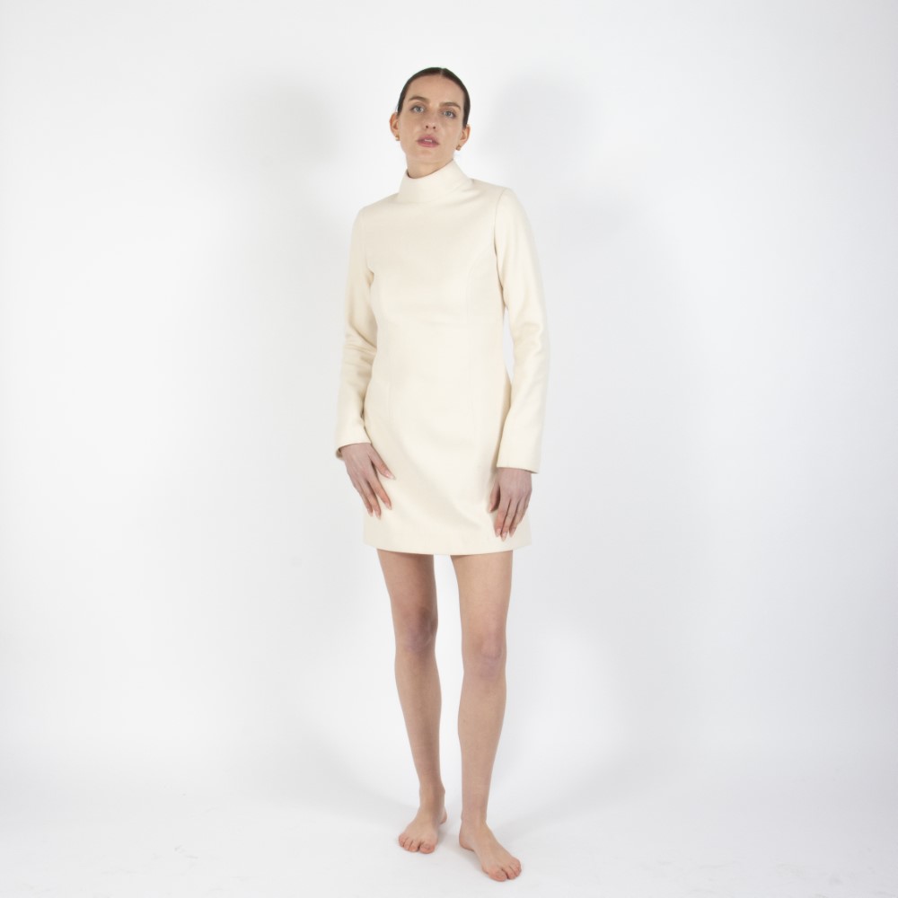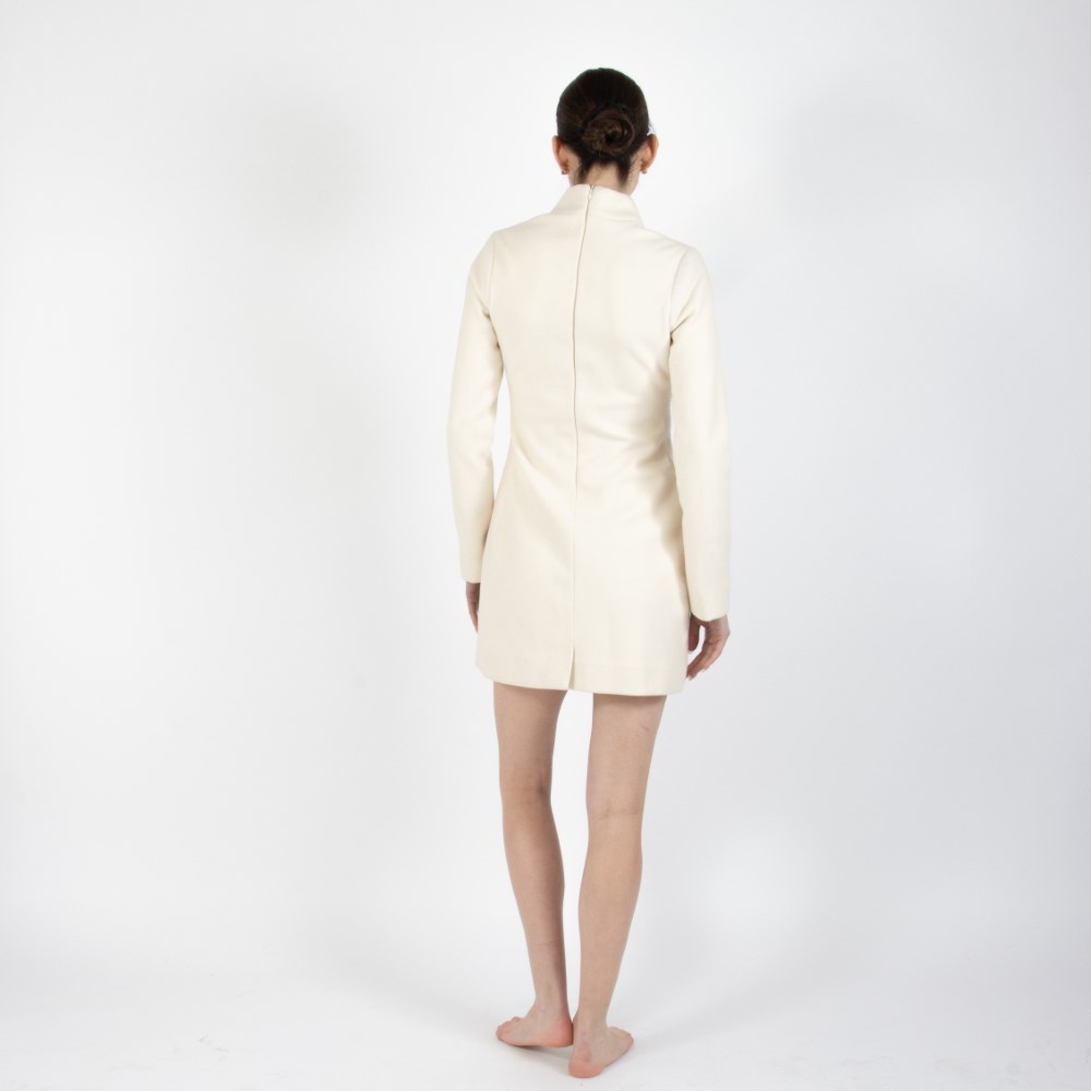 This one-of-a-kind hat features a wide brim and is crafted from iridescent sequined pure white hosiery fabric, specially embroidered with handworked circles of butterflies.