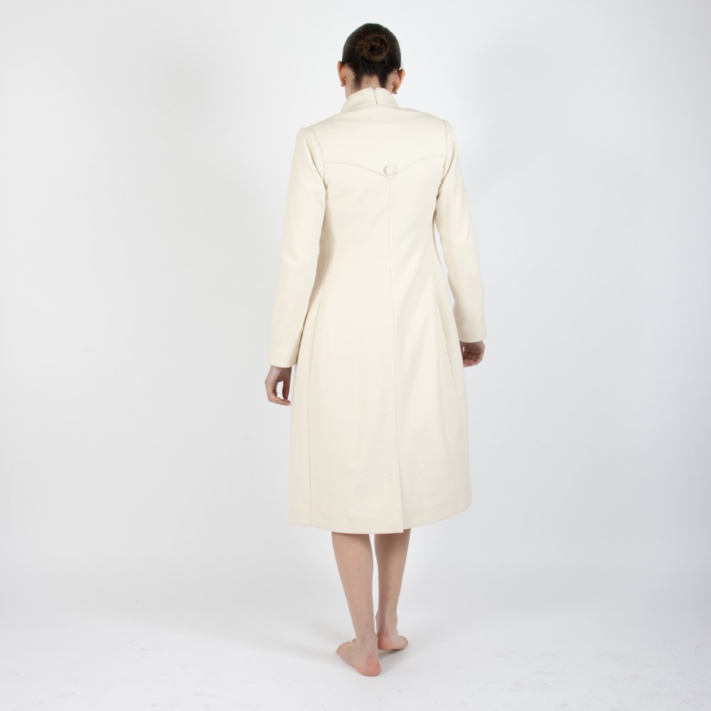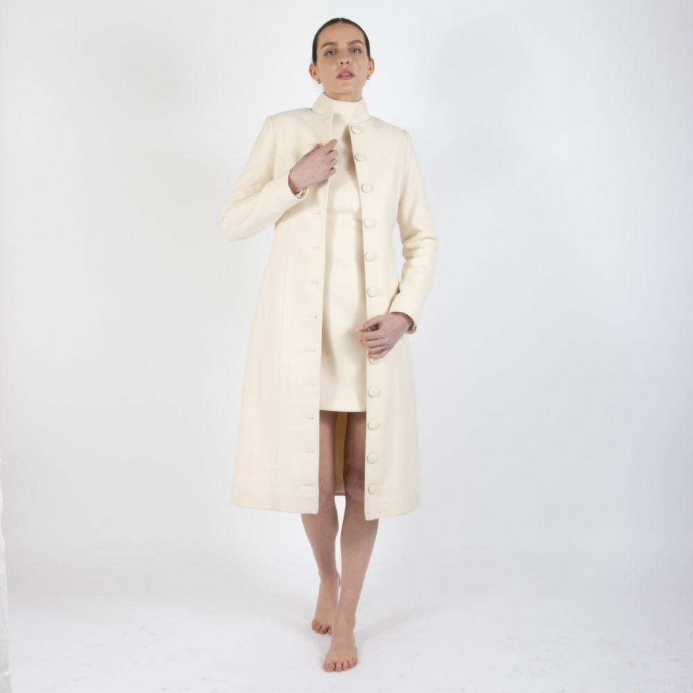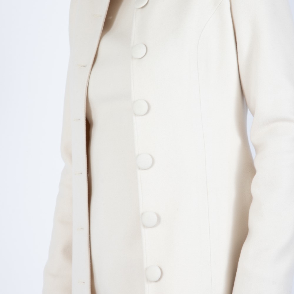 This one-of-a-kind hat features a wide brim and is crafted from iridescent sequined pure white hosiery fabric, specially embroidered with handworked circles of butterflies.