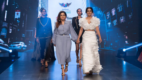 New Delhi based designer, Bani Pasricha, showcased her luxury Egyptian-inspired collection, “The Pharaoh,”  full of shimmer and delight. Pasricha brought luxury fabrics and rich colors to the runway highlighting the designer’s love for nature, history and art. Elegant fabrics such as satin crepe, dutch satin, gold sheen tissue were used in the collection featuring a