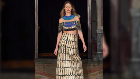 Pics: Bani Pasricha showcased her collection ‘The Pharaohs’ with a digital fashion film for India Fashion Week London. The fashion film was set on a luxurious, ancient Egypt-themed backdrop and models wore opulent headdresses resembling Egyptian queens of old. The showcase, published on YouTube, began with models wearing champagne Dutch and hammered satin gowns, cocktail dresses,