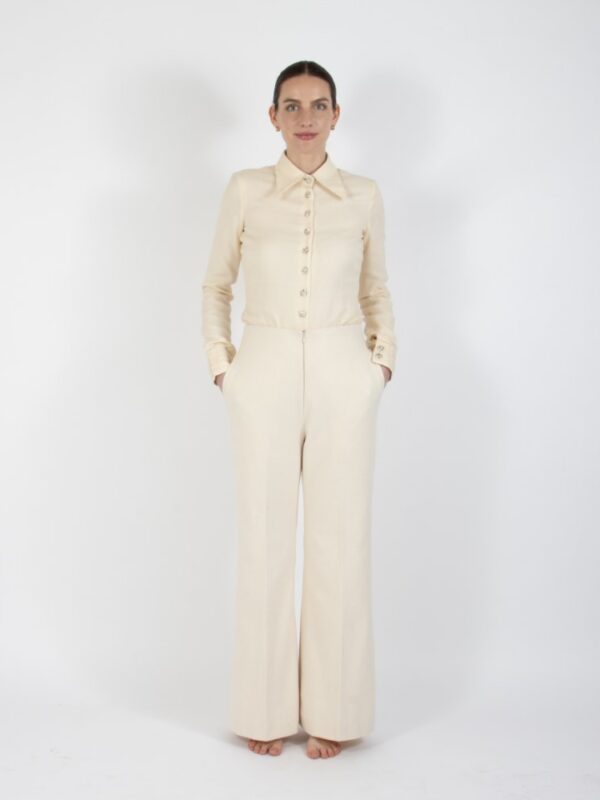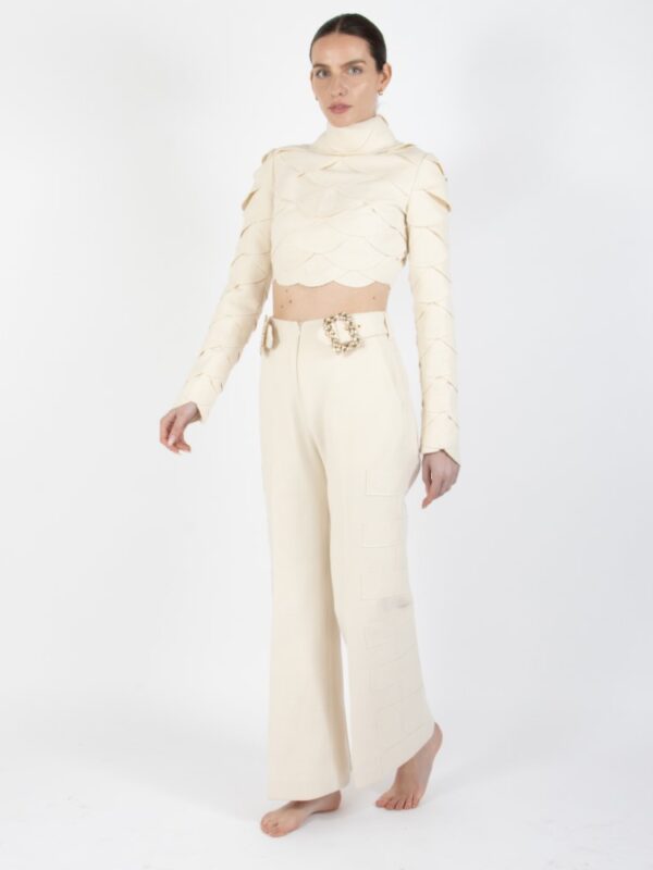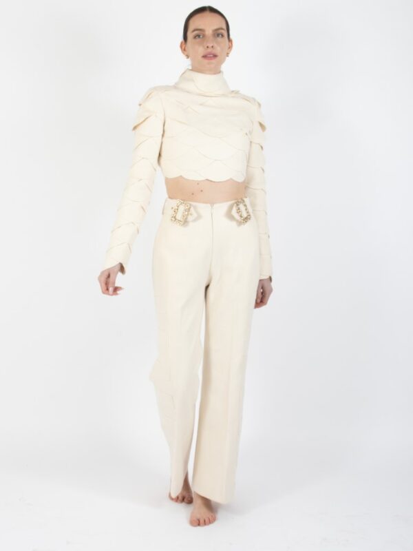 Select options This product has multiple variants. The options may be chosen on the product pageEcru White Lunara Flair Bottom Wool Trouser With Embellishment At Waist Band